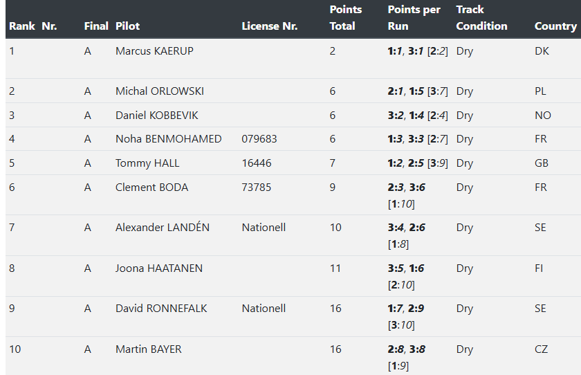 Orlowski was relegated to third with teammate Daniel Kobbevik finishing third. Noha Ben Mohammed was there on pace but not on luck to finish fourth. Tommy Hall put in one of his best performances to date to go fifth.