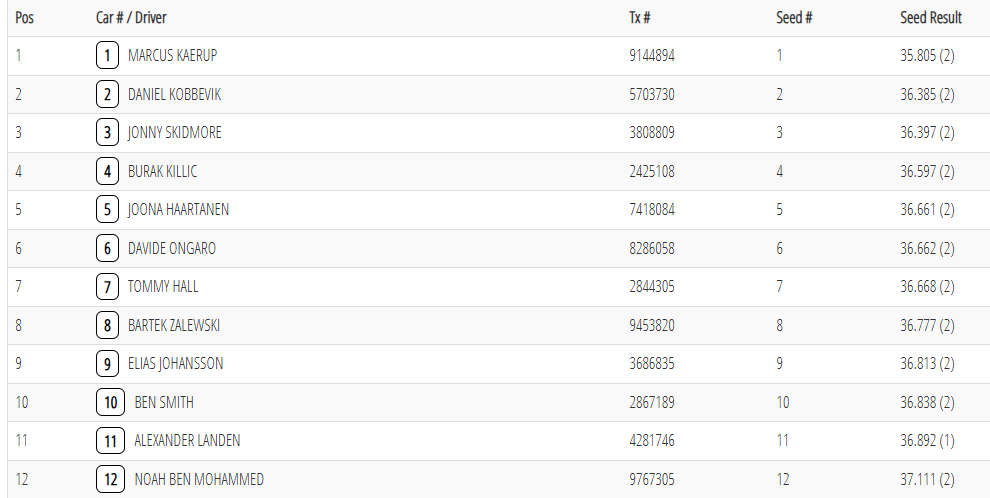 Marcus Kaerup has set the fastest time over two laps in 4wd seeding practice to secure the first postion in the top heat for qualifying. His car looks really dialled in and there is a significant gap to Daniel Kobbevik in second – approximately a quarter of a second per lap. Jonny Skidmore only another fraction behind in third…