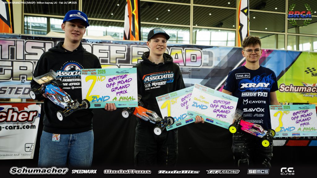 Tommy Hall put in a controlled and measured performance in 2wd A Final Leg 3 to secure the overall victory here at the 2025 British Offroad Grand Prix. The European and BRCA Champion dictated the pace under huge pressure from Marcus Kaerup, Bartek Zalewski and Daniel Kobbevik over the three legs and emerged victorious. In the end, Marcus finished 2nd with Bartek 3rd.