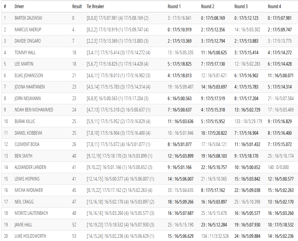 Poland’s Bartek Zalewski has taken round 4 of 4wd Qualifying. his third, and has secured Pole Position for the 4wd A Finals. Marcus Kaerup had fewer mistakes in Round 4 going second – 1.7 seconds behind. Davide Ongaro third a further 4 seconds behind….
