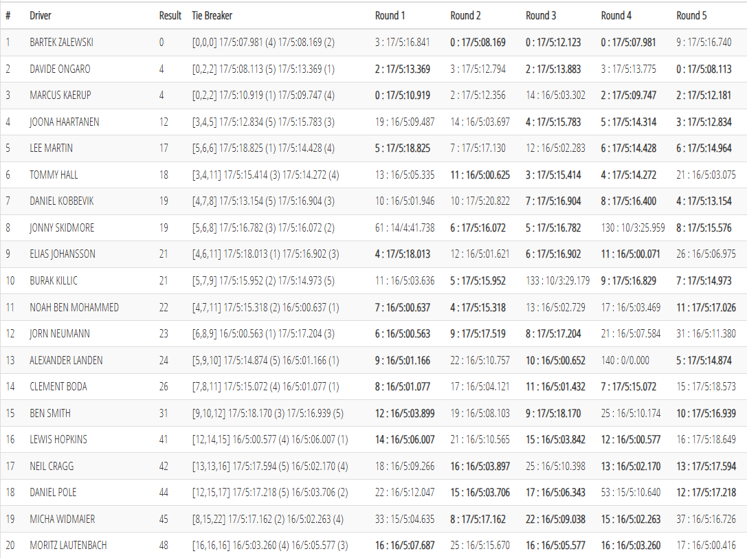 Costly mistakes from Marcus Kaerup and Bartek Zalewski left Davide Ongaro with a clear track ahead of him to lay down some rapid laps in the top heat of 4wd Qualifying Round 5. He put in a 17/5.08 to displace Kaerup from the 2 spot on the grid for the finals…