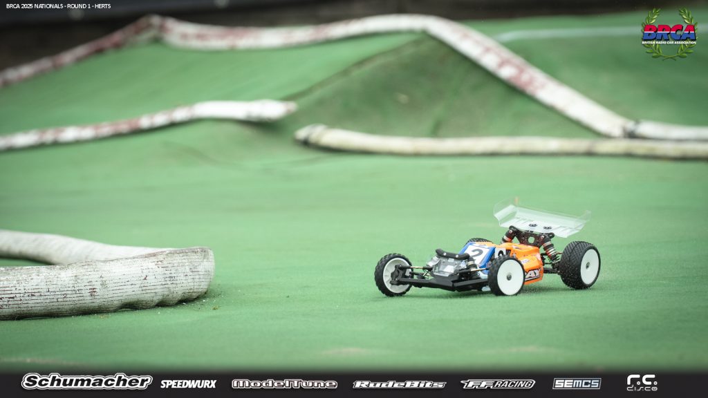 Lee Martin has set the pace in 2wd Qualifying Round 1 here at Herts. The Xray driver’s car looked like it could give more if it came to the crunch, but he did enough to qualify fastest by 2 seconds. Tommy Hall went second and Neil Cragg went third – Hall’s AE looking particularly settled and fast. Oliver Natress continues to mature in fourth with his Kyosho.