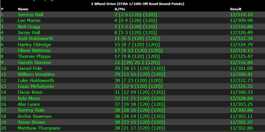 Tommy Hall did not improve on his Round 1 time as the sun came out and the grip went down in Round 2. Hall shed 3 seconds, but went fastest overall and took the round. Neil Cragg went second – his car looking quite high and a little uncomfortable. Jamie Hall was consistent with a good looking car – 6 seconds down. And Lee Martin was heading the timesheets till a mistake left him isolated from the marshal costing him at least 5 or so.