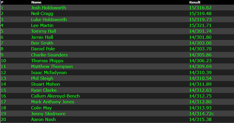 We mentioned that most of the front runners had mistakes in round 1, and in Round 2 it was the alter set of drivers who had problems. Mistakes for Smith, both Halls & Skidmore mixed things up. Lee Martin leads the points table…