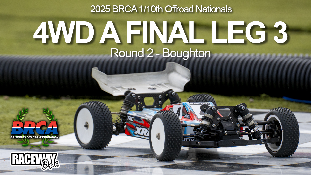 Video of Leg 2 of the 4wd A Final from Boughton - Round 2 of the 2025 BRCA 1/10th Offroad...